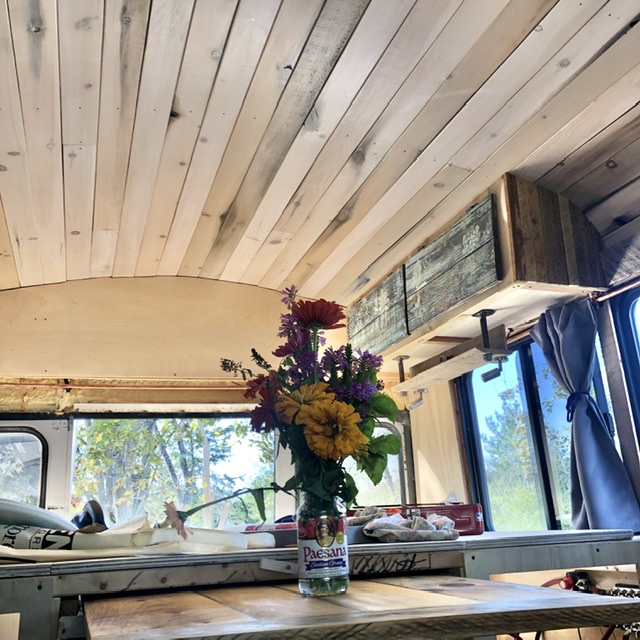We removed all 20 seats, all the wall panels, the ceiling, the floor, even the windows. We fully insulated before completely outfitting our tiny home on wheels with a queen bed, a kitchen, bathroom and even a roof deck.