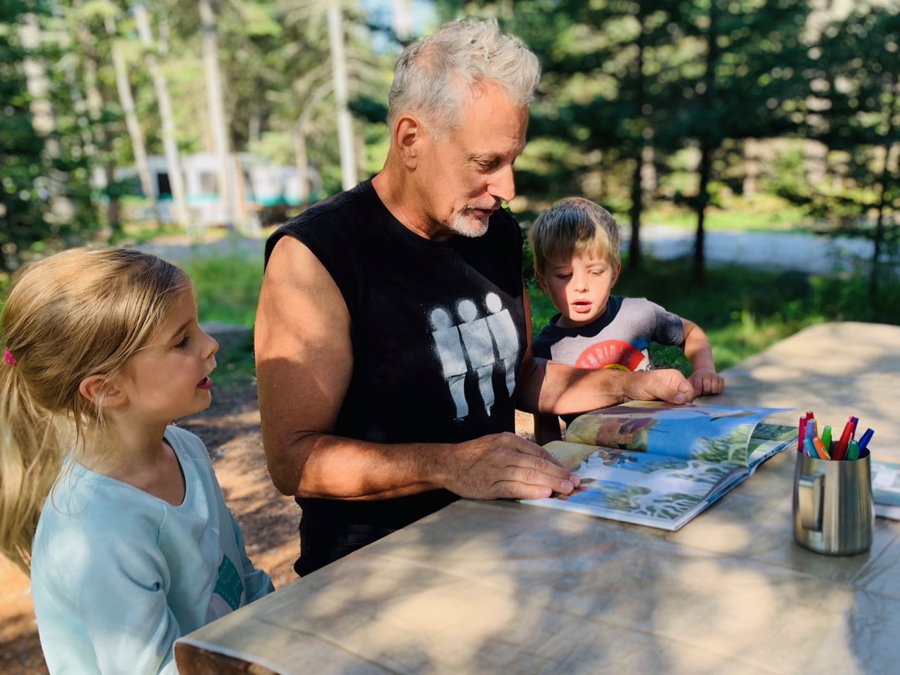 Back at the campground, Sandy made some new fans. Tatum and Chloe enjoyed trying out all the light switches in the bus and decorating our guest book. They and their parents Sean and Andi, all the way from Bend, OR invited us to park in their driveway when we make it out their way.