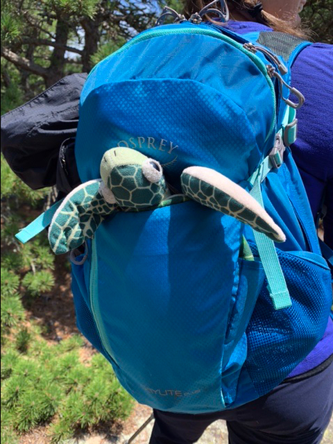 Another day found us hiking a trail on the quiet side with views of Somes Sound. We had just reached Valley Peak when we came upon three women laughing and talking about a turtle named Cece. We joined the conversation as if we’d been a part of it right along. Cece was riding in the backpack of a nurse from Texas when she was spotted by two women, a pair of friends who themselves were together for the first time in months. It wasn’t clear initially that Cece was a stuffed toy, which, in retrospect, was why she was an instant conversation starter.
