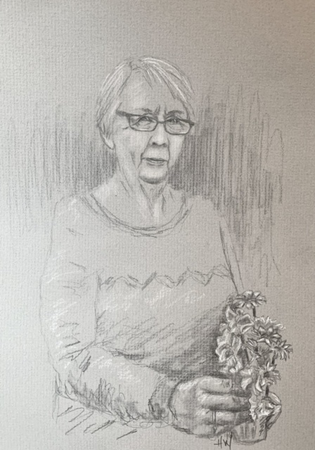 Back down at the bus, Holly said we needed flowers in our empty vase. Everything in the storefront was plastic – a motif of the South – and I didn’t really want to go in. So, in we went. I think we startled Elizabeth behind the counter. She is a White woman about the same age as Katherine. In the time we spent talking – quite a while – I never asked if she knew Katherine. She must, of course. Elizabeth warmed to us, and after learning that she had fresh flowers out of sight in the back, we asked her to make us an arrangement. Our vase is little, so she needed her imagination to put together something nice. As she filled our vase from a tub of special water, adding foam for support and gathering stems from the back, her ease of movement and talk came out. She snipped and snipped the stems, placing them just so and talked to us about her life – how she had moved about, returning to Monticello, taking over her father’s florist shop on his passing, how she doesn’t hire help because they all leave and open their own shop, about school integration when her father was superintendent of schools – all of it warm and unselfconscious. Still she snipped and snipped, with a final flourish of a sweet pea stem. When Holly picked up the vase, Elizabeth said – eyebrows cocked – “You DO know there’s a front, right?” We assured her we would place it right, and headed out. When we were halfway to the door, she called out,”Why do you do this?” Travel, she meant. I walked back to the counter to answer. “To meet people like you and see what your life is like,” I said. She had one more question. “Can I spray glitter on the flowers?” With a spritz of water and a flourish of silver glitter we were on our way.