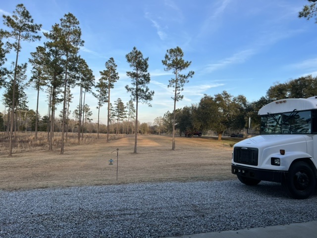 So we headed up US98 through a bit of Alabama. I had to explain Roll Tide to Holly. She was unimpressed. We had an early lunch at the Hickory Pit in Semmes, AL. The placed was busy for lunch around 10:30. We were eyed suspiciously for drinking water, not sweet tea. The first leg of this trip took us to Petal, MS, to the home of a great man named Tony. He hosted us on his five acres as a Boondockers Welcome. He was doing it right, living in a motorhome while converting two new barns to living and workshop quarters. What a good guy Tony is! He has lived and worked all over from Alaska to Texas and knows a thing or two. He insisted we go deep into the Louisiana bayou and find some boudin to eat. We’ll report on that later. In the moment, we enjoyed his banter and his pretty acres of long leaf pine.