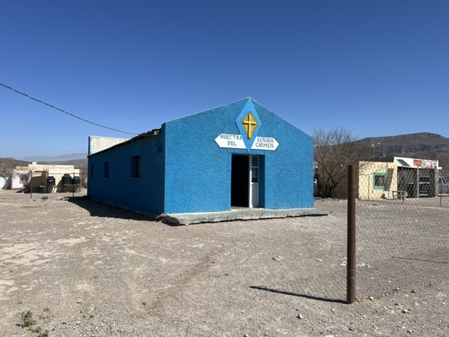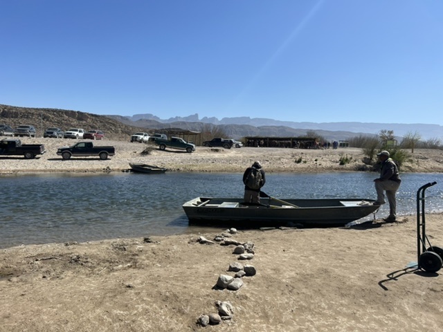 As always, as much as we were enthralled by the landscape, it was the range of people and the absence of people that made the greatest impression. Part of our stay was a quick trip into Mexico. The US National Park Service is under agreement with Mexico to have a simplified crossing from Big Bend NP to the Mexican town of Boquillas del Carmen. We were able to cross the Rio Grande without documentation and walk to the village. We would need our passports to return, though. The crossing was by rowboat – five bucks each round trip – but we could have walked, water conditions permitting. Then, our options were: walk to town (free), hop on a burro ($10), ride a horse ($15), get a ride in a truck ($20). We walked. Boquillas del Carmen seemingly gets by solely on American dollars that make the crossing. We had a wonderful lunch of goat tacos and returned – not having purchased any of the goods being sold everywhere. While we enjoyed the foray, it also made me question why life would be utterly different a mere 40-foot rowboat ride away.