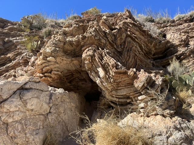 We really put the Jeep to the test and drove five miles into backcountry on Old Ore Road. It was a hair raising drive, but amazingly, others were doing the drive in ordinary little SUVs. We followed a Mazda SUV driven by a Russian man to the Ernst Tinaja. This was a magical place. The Tinaja – Spanish for ”earthen jar” – is an elaborately eroded area with swirling rock and deep potholes.