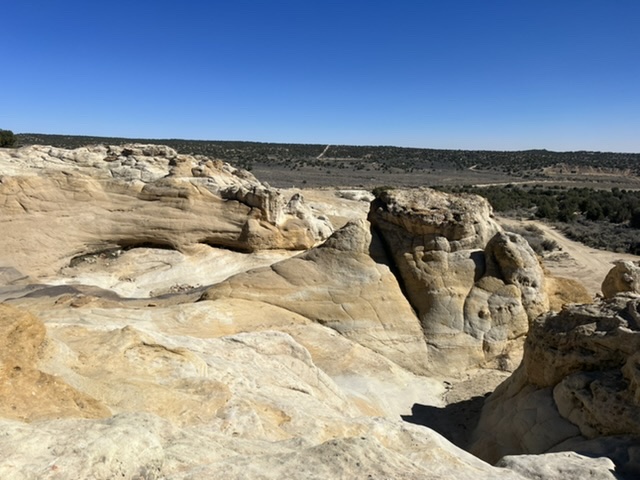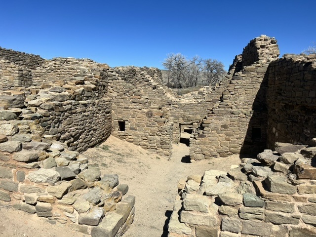 While most BLM camping is dispersed (remote, separated sites along dirt roads), this is actually a free BLM campsite in Brown Springs Campground in Farmington, NM. There are miles and miles of off-road trails for quads, dirt bikes and mountain bikes. I called it Mini Moab.Some of the slickrock at Brown Springs Campground. This has excellent grip, and is a blast to roll up and down.We then visited Aztec Ruins National Monument in the town of Aztec, NM. Fun fact: Aztec people never lived here. The Ancestral Pueblo people who settled and farmed here used the site for generations, and then simply left. The stone was quarried and carried by hand from nearby, and the heavy wood timbers came from at least 40 miles away. No carts, no wheels, no pack animals. All by hand.The interior of the main Kiva at the ruins. This space was used for public matters, spiritual celebrations, storytelling and other matters of community.A feature of the entryway of the Kiva, purpose unknown to me.