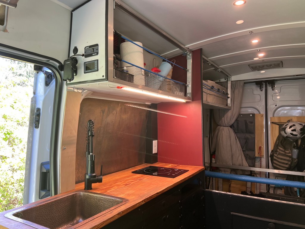 On a practical note, we have to move into the van. It’s been hard to work on the build. Neither one of us has uttered, “Next build, we’ll . . . “ We are so done. We’re pleased with the results, but it will be hard to give up the best bus bathroom ever. On the other hand, I am looking forward to the drivability gains – zooming to see Drew and Natalie and Tate, hitting 25 miles of washboard to the Chaco Culture National Historical Park, or winding through the Moki Dugway. The new build is all electric – no propane, so we’ve had to stress optimizing our solar array. We should be able to have 700 watts on the roof, plus 200 watts remote. We have also done a two-inch lift with tire and suspension upgrades. All this, of course, is designed to get us who-knows-where.
