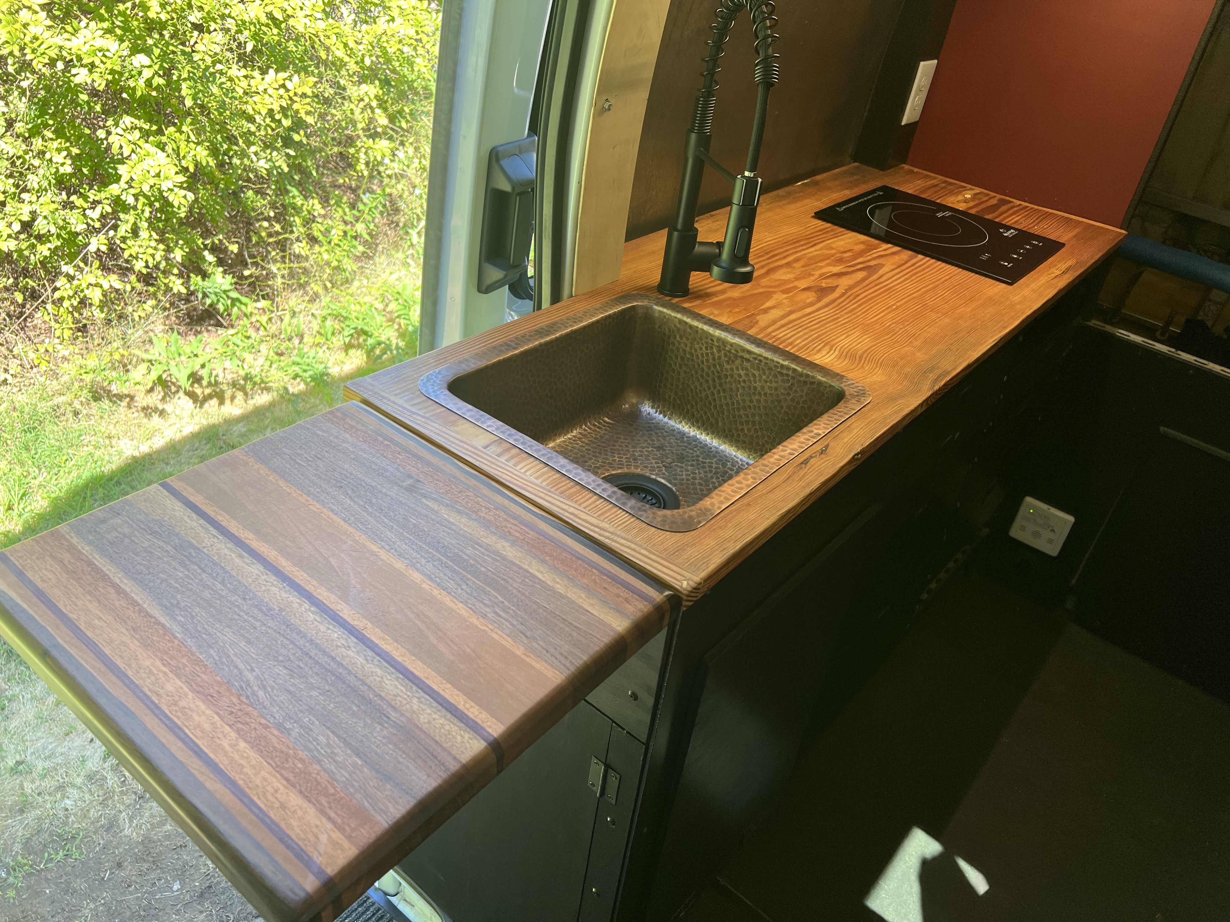 On a practical note, we have to move into the van. It’s been hard to work on the build. Neither one of us has uttered, “Next build, we’ll . . . “ We are so done. We’re pleased with the results, but it will be hard to give up the best bus bathroom ever. On the other hand, I am looking forward to the drivability gains – zooming to see Drew and Natalie and Tate, hitting 25 miles of washboard to the Chaco Culture National Historical Park, or winding through the Moki Dugway. The new build is all electric – no propane, so we’ve had to stress optimizing our solar array. We should be able to have 700 watts on the roof, plus 200 watts remote. We have also done a two-inch lift with tire and suspension upgrades. All this, of course, is designed to get us who-knows-where.