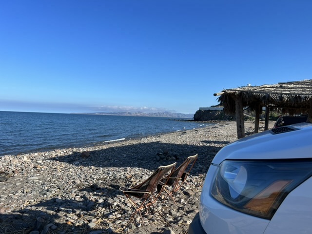 We began to feel settled and truly benefiting from our journey during our stay at Playa Punta Piedrita, a beach south of Mulege on the stunning Bahia de Concepcion. This was not a free beach – we paid $200MX per night, with a discount for a week’s stay – but we immediately decided it was worth spending an extended time. Mexico has a quirky system for paid beach camping, and I’m not clear on what that system is. All beach in Mexico is public. However, the adjoining land, and the land one must cross to get to the beach are another matter. It *might* be true that some people get a concession permit from the government and can then charge for beach access. These folks tend to provide some level of service in return. Whatever the case, we came to accept it and paid our $200MX (about 10 bucks) now and then.
