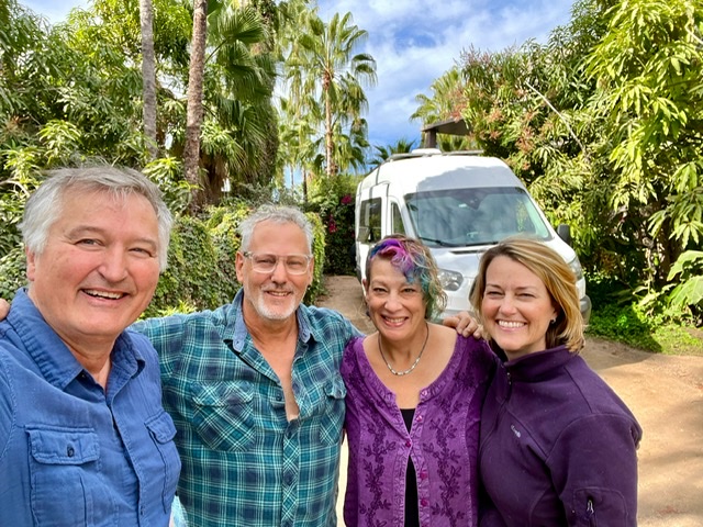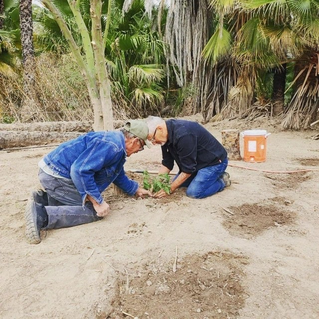 Here’s what happened in San Ignacio: We’d heard the best tacos in Baja were to be found at San Ignacio, along with free parking near the mission. The taco place was closed, and street parking had been banned – too many vans. We took a spot at a small rv park called Paraiso Misional. The town is an oasis in the desert with date palms and small lagoons. The property has been in the hands of a couple, Miguel and Tere along with a son, Andres, and a small donkey Princessa, for the past 15 months, and they are conducting an amazing transformation. When we arrived I saw that work was still underway. I love physical work and miss it. I offered my help to Miguel and flexed a bit so he could see I was the real deal. Nonetheless, he declined my offer and encouraged me to enjoy my stay. Holly and I did enjoyable things, and after two nights we prepared to leave. We thanked Miguel and Tere for providing such a respite. Miguel, an honorable and thoughtful man, confessed that he had been thinking about my offer and felt that he had shown me a lack of respect by declining my help. The lesson was instantly familiar to me. It’s a lesson that I imagine many men find hard. When a person offers help, it can be a dishonor to decline it. We surmise we are being gracious in shouldering things alone, but we can cast away good people in moments that build bonds. Miguel had slept on this, apologized, and made good on it. He walked with me to his new garden, which I had seen him clearing the day before. He asked me to plant his very first plant – a tomato vine that is destined to climb a tree this spring. I was honored to kneel in the dirt with Miguel and get his garden off in a good direction.
