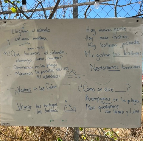 On the beach at Piedrita, and elsewhere, residents come around selling things – blankets, rugs, handmade crafts, fish, scallops, baked goods, veggies – you name it. We quickly got ok with buying fish out of a car trunk. One evening, I had cooked maybe a kilo of scallops, too much for the two of us. A Subaru pulled in, towing a little off-road camping trailer. It was dusk, late for them to make dinner. (Midnight in Baja is 9pm) Thus, I offered up a plate of hot scallops to the new folks. I can say now, weeks later and having stayed at their home, Casa Mango, in Todos Santos that we count Derek and Laura and their dog Navidad ‘Navi’ as friends. Within minutes of having met them, we had an invitation to Casa Mango. As always, I try to leave the personal storytelling to the people themselves, so I’ll say simply that Holly and I found Derek and Laura to truly embody love and hard work and justice and adventure. We camped at their place for several nights, watching baby turtles waddle into the ocean, hearing the waves crash from afar, taking a Spanish class in town, meeting local artisans, and eating very well.