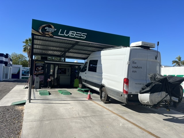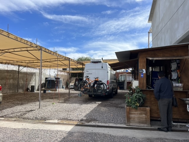 We took care of some daily life matters while in La Paz. We had an oil change on the van, got it washed, got a windshield wiper, had a camp chair repaired and bought bike tires and tubes. All of it was a chance for me to practice Spanish. Twice, I got nervous and said adios instead of hola. The time I said it to a soldier at a checkpoint, he wasn’t amused. I found that by trying to use Spanish and leading with a smile and respect, all of these transactions were a breeze. I don’t have a pic of the man who sold me the wiper. Here’s how it went. I bought what I thought was the right part, only to learn I made a mistake. I went back into the shop, and they did not have the right one. In the US, that would have ended with me leaving empty handed. Not in La Paz. The man in the shop offered to dismantle the old wiper and the new, and to transfer the rubber blade to the old wiper. He had both apart down the the smallest clips and back together in about twenty minutes. He came out to the van to make sure it would work. He could not accept a tip, but we went in and called his boss to make sure his kindness and hard work were noted.