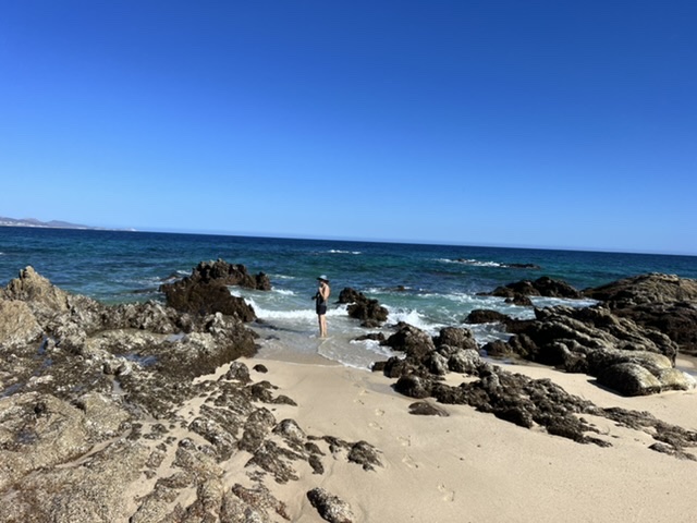 From Todos Santos, we headed south to Los Cabos – Cabo San Lucas and San Jose del Cabo – a major tourist area. Being a major tourist area, we had little interest in spending time there. We did some provisioning in Cabo San Lucas and left. San Jose del Cabo was more to our liking. It is a genuinely old city with world class art galleries. Still, it really wasn’t for us. We did have an oddly enjoyable few days, parked in a beach lot jammed in between resorts where people pay sometimes thousands per night. We parked for free and enjoyed the prettiest beach we have ever seen.