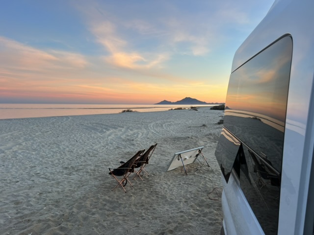 We were advised to head a few hours south to San Felipe after crossing the border. While we certainly were not – and are not – plagued by fear, we are aware of higher crime rates in border towns. Not knowing at all how to proceed, we actually booked a Harvest Host for the first night. It was fine, but not necessary. We easily found our first free beach nearby for the next two nights. Here’s how it works: Drive down a highway, pull off the highway where you have chosen a beach (typically from iOverlander), drive down an insanely bumpy dirt road, park on the beach.