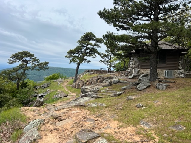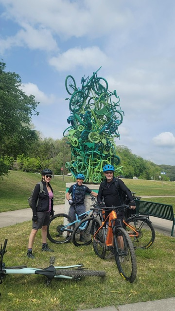 We met Connecticut friends – including Bob and Mylen – in Arkansas to do some mountain biking. The towns of Bella Vista and Bentonville have world class trails built with money from the Walton family. We had a great time riding and visiting and talking around campfires. From there, Holly and I continued to Fayetteville and Mount Nebo State Park in Arkansas for more biking. It was great getting back on the bike – until it wasn’t. More on that later. The highlight of all this was Mount Nebo, an isolated little mountain in the floodplain of the Arkansas River, with views clear to Oklahoma. It was a lovely park with ‘armored’ stone trails and epic views. We got to see the season opener of the Big Mountain Enduro mountain bike races with riders from amateur to professional.