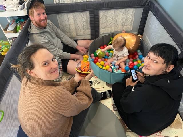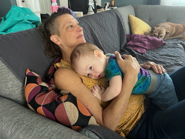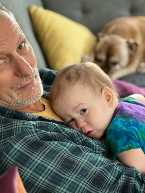 And yet, we have much to celebrate! Our recent travels had us arriving at Chicago for major engine work on the van, and getting to hang with Tate and Drew and Natalie for three wonderful weeks. We got to actually watch Tate grow. Just sitting with him in his Palazzo, twisting clickety sticks or watching him at his ginormous amazing busy board – made by his mega-talented other grandpa – is a study in slow motion art. Watching him learn and laugh from my front row grandfatherly perch is a different joy from my own parenting days, often spent flummoxed and dumb.