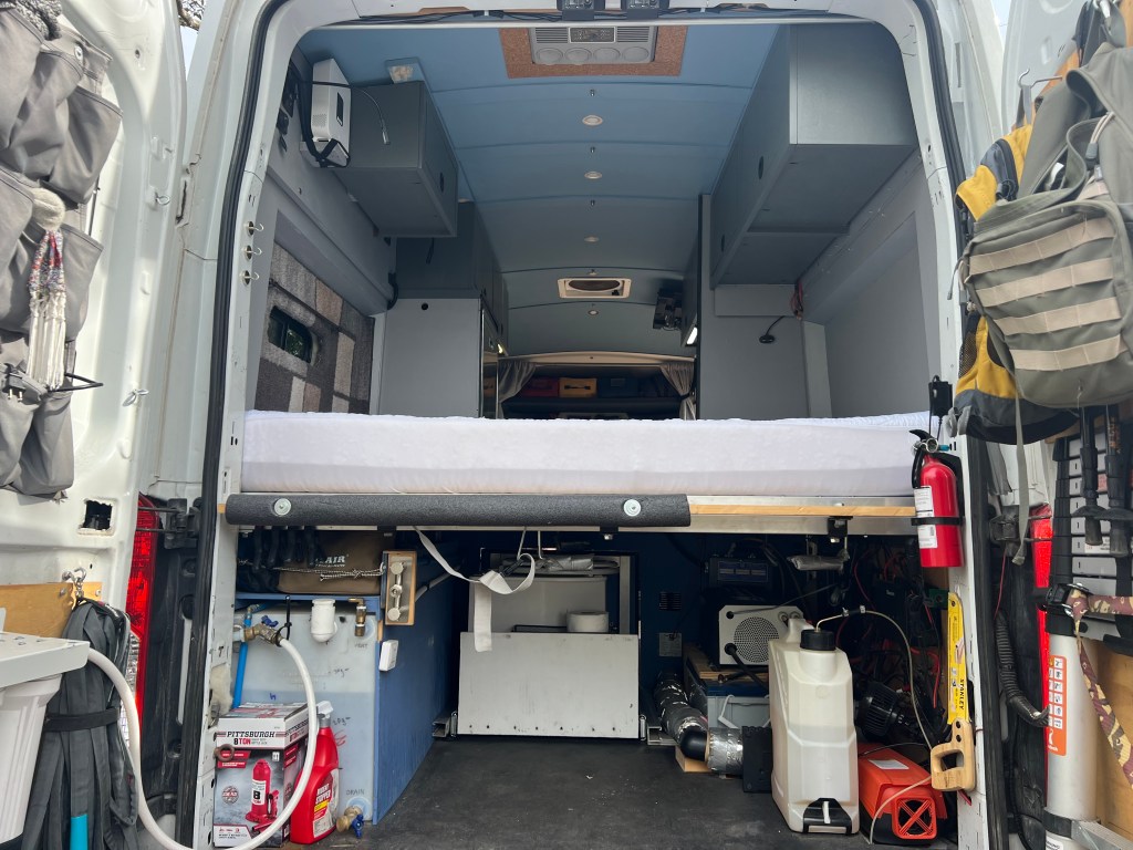 So, yes, we landed in Florida with a plan to remodel the van interior. We had bought the van already converted and made modifications enough to suit us – but the van never met our vibe, and definitely not as intimately as Sandy, our former bus. We grabbed an AirBnb with wonderful hosts John and Beverly and tore apart the inside of the van. It was a tough job, replacing cabinets, passing wires through the roof, moving plumbing. It was a welcome all-consuming task.