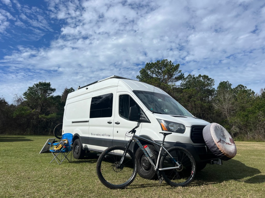 Holly is away for a few days, and I’ve had the good fortune to ride my bike at Santos Trails in Ocala. The van is in good shape (look for a video van tour soon), and we’re working on acceptance and listening to the world. I find it hard being stubborn and committed to reshaping things that resist.