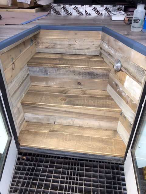 For the entry stairs, I used a combination of leftover ceiling planks (for the walls and risers), and new lumber (for the treads).