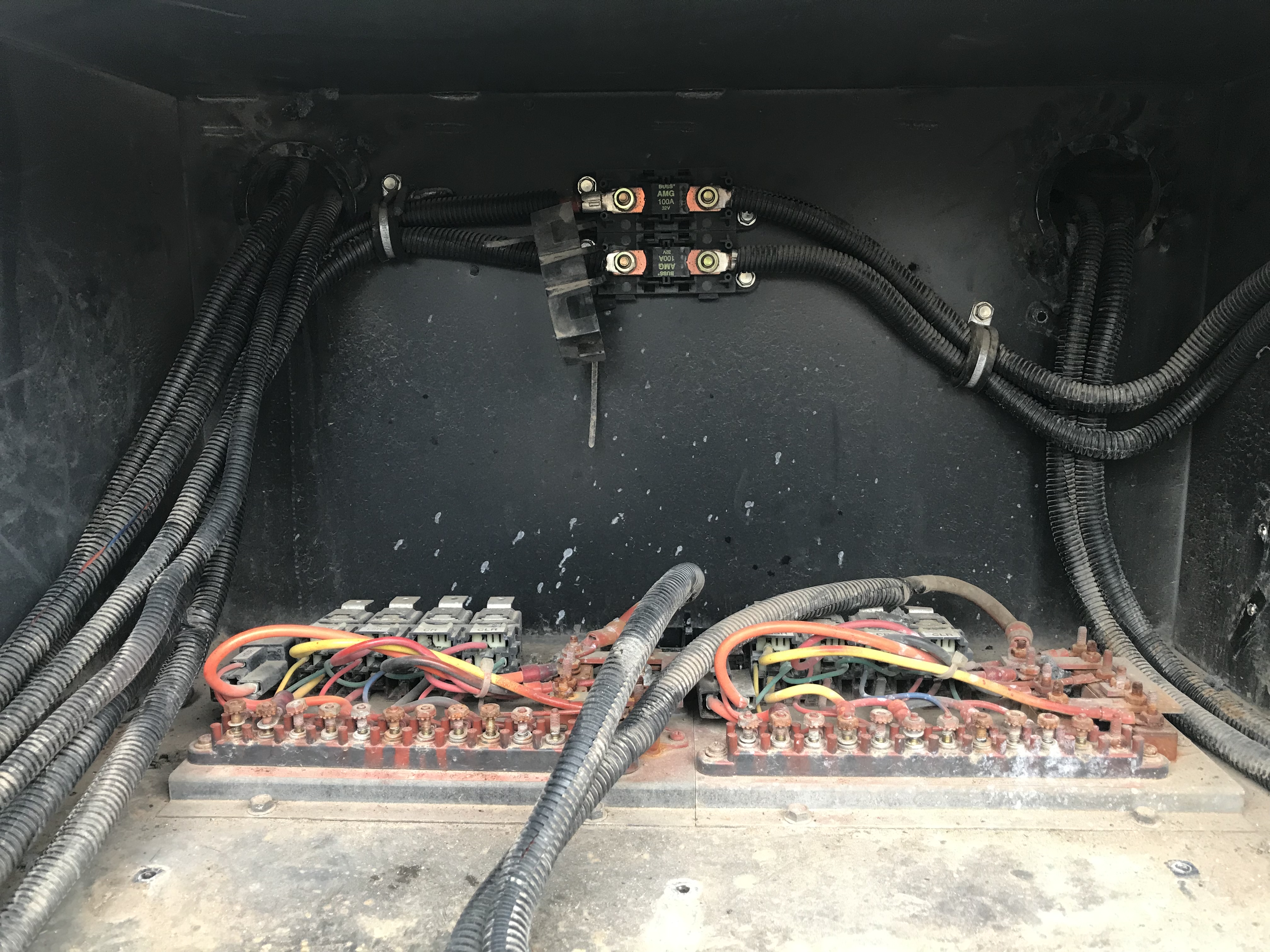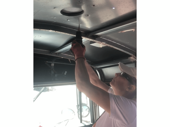 Once we had the condensers and evaporators pulled, we had to trace and delete the electrical runs from the air conditioners. This was in fact very complicated, with wires back to a distribution panel in an outside bay. From there, we had to trace the lines back to the inside switches alongside the driver’s seat. Any misstep here could cause a glitch preventing the bus from running.